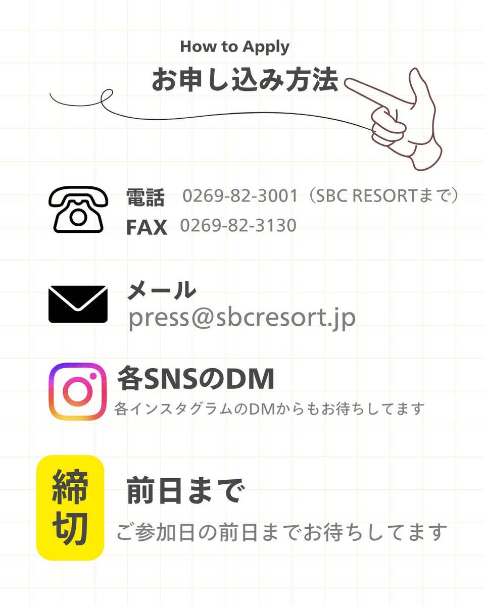 メール:press@sbcresort.jp