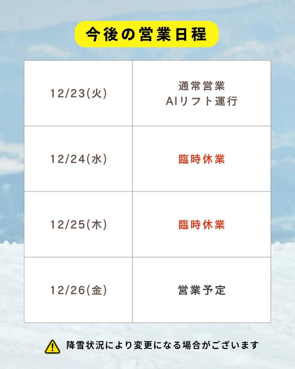 安全にご利用いただけるゲレンデコンディションの維持が困難と判断し、